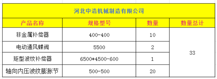 尊敬的趙經理,感謝您對河北中浩 產品信任與選擇。很高興通知您,您在河北中浩訂購非金屬補償器 、 矩形波紋補償器 、電動通風蝶閥、 軸向內壓波紋膨脹節等產品, 已經完成生產、檢驗、包裝等全部工作,現分體運輸,已裝車發貨,愿您及時了解發貨詳情,做好接貨準備。特向您提供發貨相關信息。